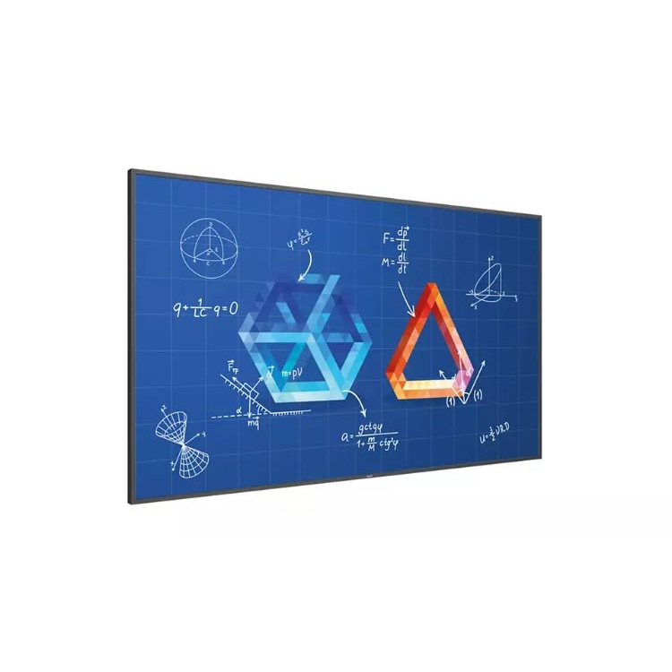 Especificaciones:. . Imagen/Pantalla. . . Tamaño diagonal de pantalla (métrico) 163,9 cm. Tamaño diagonal de pantalla (pulgadas) 64,5 pulgada. Resolución de pantalla 3840 x 2160. Resolución óptima 3840 x 2160 a 60 Hz. Brillo 420 cd/m². Relación de contraste (típica) 1300:1. Tratamiento de la superficie Revestimiento antirreflejos. Relación de aspecto 16:9. Tiempo de respuesta (típico) 9 ms. Punto de píxel 0,372 x 0,372 mm. Colores de pantalla 1070 millones de colores. ángulo de visión (horizontal) 178 grado. ángulo de visión (vertical) 178 grado. Mejora de la imagen Cámara lenta 3/2 - 2/2. Filtro de peine 3D Desentrelazado de compensación de mov.. Escaneado progresivo Desentrelazado 3D MA. Mejora del contraste dinámico. Relación de contraste dinámico 500.000:1. Tecnología del panel IPS. Sistema operativo Android 9. . Interactividad. Tecnología multitoque Toque por infrarrojos avanzado. Puntos de contacto 20 puntos de contacto simultáneos. Plug and Play Compatible con HID. Cristal protector Vidrio templado de seguridad / Antideslumbramiento . . Conectividad. Entrada de vídeo:. Display Port 1.2 (x1). DVI-I (x 1). HDMI 2.0 (x4). USB 2.0 (x2). USB 3.0 (x2). USB-C. Entrada de audio Conector de 3,5 mm (x1). Salida de audio Conector de 3,5 mm (x2). Control externo: . RJ45. Toma de infrarrojos (entrada/salida) de 3,5 mm. Toma RS232C (entrada/salida) de 2,5 mm. Otras conexiones:. micro SD. OPS. Salida de vídeo:. DisplayPort 1.2 (x1). DVI - D (x1). HDMI 2.0 (x1). USB 2.0 (x2). . Resolución de pantalla compatible. Formatos informáticos. . 1024x768, 60,70Hz. 1152 x 864, 60, 70, 75 Hz. 1152 x 900, 66 Hz. 1280 x 720, 60, 70 Hz. 1280 x 768, 60 Hz, 75 Hz. 1280 x 800, 60,75 Hz. 1280 x 960, 60 Hz. 1280 x 1024, 60, 67, 75 Hz. 1360 x 768, 60 Hz. 1366 x 768, 60 Hz. 1400 x 1050, 60, 75 Hz. 1440 x 1050, 60Hz. 1440 x 900, 60, 75 Hz. 1600 x 1200, 60 Hz. 1600 x 900, 60 Hz. 1680 x 1050, 60Hz. 1920 x 1080, 60 Hz. 1920 x 1200, 60 Hz. 3840 x 2160, 24, 25, 30, 60 Hz. 640 x 350, 70Hz. 640 x 480 a 60, 67, 72, 75 Hz. 800 x 600 a 56, 60, 72, 75 Hz. 832 x 624, 75 Hz. 848 x 480, 60 Hz. 960 x 720, 75 Hz. Formatos de vídeo. 1080i, 50, 60 Hz. 1080p, 50, 60 Hz. 480p, 60 Hz. 4K x 2K. 576p, 50 Hz. 720p, 50, 60 Hz. 720p, 60 Hz. . Cómodas funciones. Ubicación Horizontal (18/7). Señal de bucle intermedio:. Bucle intermedio IR. DisplayPort. RS232. Con control de red:. RS232. RJ45. Rendimiento de imagen Control del color avanzado. Funciones de protección de pantalla Desviación de píxeles, bajo brillo. Control de teclado:. Oculto. Se puede bloquear. Señal del mando a distancia Se puede bloquear. Funciones de ahorro de energía Apagado/encendido inteligente. Otra comodidad Asas de transporte. Instalación simplificada Fácil inserción. . Dimensiones. Longitud del dispositivo 1494,30 mm. Altura del dispositivo 869,40 mm. Profundidad del dispositivo 80,2 mm (montaje en pared)/106,8 mm (cubierta de altavoz) mm. Peso del producto 43,6 kg. Montaje VESA 400 (H) x 400 (V), M8. Anchura del bisel 16,30 mm (par). Peso del producto (lb) 96,12 libras. Profundidad del dispositivo (pulg.) 3,16 (montaje en pared)/4,20 (cubierta del altavoz) pulgada. Altura del dispositivo (pulg.) 34,23 pulgada. Longitud del dispositivo (pulg.) 58,83 pulgada. Montaje de fácil inserción 100 mm x 100 mm, 6 x M4L6. . Sonido. Altavoces integrados 2 x 20 W RMS. . Condiciones de funcionamiento. Rango de temperatura (funcionamiento) 0 ~ 40 ºC. Humedad relativa 20 ~ 80 % (funcionamiento), 5 - 95 % (almacenamiento) %. MTBF 30 000 hora(s). Altitud 0 ~ 3000 m. Rango de temperaturas (almacenamiento) -20 ~ 60 ºC. . Potencia. Red eléctrica 100 ~ 240 V de CA, 50 ~ 60 Hz. Consumo de energía en modo en espera <0,5 W. Funciones de ahorro de energía Apagado/encendido inteligente. Consumo (típico) 175 W. Consumo (máx.) 350 W. Aplicaciones multimedia. Reproducción de imágenes a través de USB:. BMP. JPEG. JPG. PNG. Reproducción de audio a través de USB:. AAC. M4A. MP3. WMA. Reproducción de vídeos a través de USB:. ASF. AVI. DAT. FLV. MKV. MP4. MPEG. MPG. TS. VOB. WEBM. WMV. . Reproductor interno. CPU MTK5680. Almacenamiento eMMc de 32 GB. Wi-Fi:. AP(WC0SR2511-88112BU). STA(WCT5GM2511MT7668AU). GPU DDR4 DE 4 GB. Memoria 4 GB de RAM