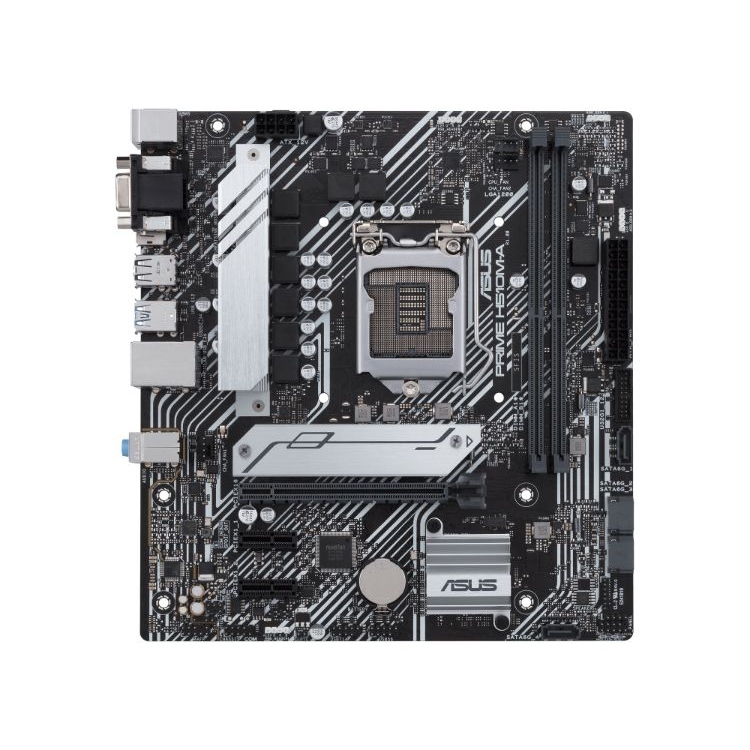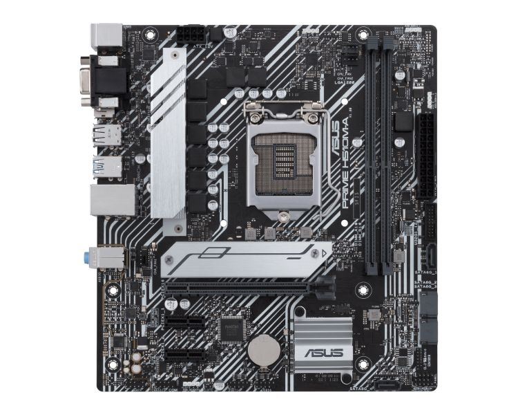 CPU. Intel® Socket LGA1200 for 11th Gen Intel® Core Processors & 10th Gen Intel® Core, Pentium® Gold and Celeron® Processors. Supports Intel® 14 nm CPU. Supports Intel® Turbo Boost Technology 2.0 and Intel® Turbo Boost Max Technology 3.0**. * Refer to www.asus.com for CPU support list.. ** Intel® Turbo Boost Max Technology 3.0 support depends on the CPU types.. . Chipset. Intel® H510 Chipset. . Memory. Memory Channels:2DDR4 (Dual Channel). Max Memory Size:64GB. DDR4 3200(OC)/2933/2800/2666/2400/2133 MHz Non-ECC, Un-buffered Memory*. . Dual Channel Memory Architecture. Supports Intel® Extreme Memory Profile (XMP). * 10th Gen Intel® Core i7/i9 processors support 2933/2800/2666/2400/2133 natively, others will run at the maximum transfer rate of DDR4 2666MHz.. * 11th Gen Intel® processors support 2933/2800/2666/2400/2133 natively.. . Graphics. 1 x DisplayPort 1.4**. 1 x D-Sub. 1 x HDMI 2.0**. * Graphics specifications may vary between CPU types. . ** Intel® 11th & 10th Gen processors support DisplayPort 1.4 with max. resolution of 4096 x 2304 @60Hz. Please refer to www.intel.com for any update.. *** Only Intel® 11th Gen processors support HDMI 2.0 with max. resolution of 4K@60Hz, others will only support HDMI 1.4 with max. resolution of 4K@30Hz. Please refer to www.intel.com for any updates.. . Expansion Slots. Intel® 11th & 10th Gen Processors. 1 x PCIe 4.0/3.0 x16 slot. - Intel® 11th Gen processors support PCIe 4.0 x16. - Intel® 10th Gen processors support PCIe 3.0 x16. Intel® H510 Chipset. 2 x PCIe 3.0 x1 slots. . Storage. Supports 1 x M.2 slot and 4 x SATA 6Gb/s ports. Intel® H510 Chipset. M.2 slot (Key M), type 2242/2260/2280 (supports PCIe 3.0 x4 & SATA modes). 4 x SATA 6Gb/s ports. * The M.2 slot shares bandwidth with the SATA6G_2 port. When a device in SATA mode is installed on the M.2 slot, the SATA6G_2 port cannot be used.. . Ethernet. 1 x Intel® I219-V 1Gb Ethernet. . USB. Rear USB:Total 6 ports. 2 x USB 3.2 Gen 1 ports (2 x Type-A). 4 x USB 2.0 ports (4 x Type-A). . Front USB:Total 6 ports. 1 x USB 3.2 Gen 1 header supports additional 2 USB 3.2 Gen 1 ports. 2 x USB 2.0 headers support additional 4 USB 2.0 ports. . Back Panel I/O Ports.