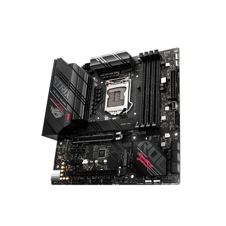Especificaciones:. . CPU. . Intel® Socket LGA1200 for 11th Gen Intel® Core Processors & 10th Gen Intel® Core, Pentium® Gold and Celeron® Processors. Supports Intel® 14 nm CPU. . Supports Intel® Turbo Boost Technology 2.0 and Intel® Turbo Boost Max Technology 3.0**. . * Refer to www.asus.com for CPU support list.. . ** Intel® Turbo Boost Max Technology 3.0 support depends on the CPU types.. Chipset. . B560. . Memory. . DDR4 5000(OC)/4800(OC)/4600(OC)/4400(OC)/4266(OC)/4000(OC)/3733(OC)/3600(OC). /3466(OC)/3333(OC)/3200/2933/2800/2666/2400/2133 MHz Non-ECC, Un-buffered Memory*. . Dual Channel Memory Architecture. . Supports Intel® Extreme Memory Profile (XMP). . OptiMem II. . * 10th Gen Intel® Core i7/i9 processors support 2933/2800/2666/2400/2133 natively, others will run at the maximum transfer rate of DDR4 2666MHz.. . * 11th Gen Intel® processors support 3200/2933/2800/2666/2400/2133 natively.. . * Refer to www.asus.com for the Memory QVL (Qualified Vendors Lists).. . Graphics. . 1 x DisplayPort 1.4**. 1 x HDMI 2.0***. * Graphics specifications may vary between CPU types.. . **Only Intel® 11th processors, support DisplayPort 1.4 with max. resolution of 5120 x 2880 @60Hz, others would only support DisplayPort 1.4 with max. resolution of 4096 x 2304 @60Hz .Please refer to www.intel.com for any update.. . *** Only Intel® 11th processors support HDMI 2.0 with max. resolution of 4K@60Hz, others will only support HDMI 1.4 with max. resolution of 4K@30Hz. Please refer to www.intel.com for any updates.. Expansion Slots. . 1 x PCIe 4.0 x16 + 1 x PCIe 3.0 x16 (max. x4). Intel® 11th &10th Gen Processors. 1 x PCIe 4.0/3.0 x16 slot(s). - Intel® 11th processors support PCIe 4.0 x16 mode. - Intel®10th processors support PCIe 3.0 x16 mode. Intel® B560 Chipset. 1 x PCIe 3.0 x16 slot (supports x4 mode). 2 x PCIe 3.0 x1 slots. Storage. . Supports 2 x M.2 slots and 6 x SATA 6Gb/s ports. Total supports 2 x M.2 slots and 6 x SATA 6Gb/s ports. . Intel®11th Gen Processors. . M.2_1 slot (Key M), type 2242/2260/2280/22110. . - Only Intel® 11th processors support PCIe 4.0 x4 mode, this slot will be disabled for other CPUs.. . Intel® B560 Chipset. . M.2_2 slot (Key M), type 2242/2260/2280 (supports PCIe 3.0 x4 & SATA modes)*. . 6 x SATA 6Gb/s ports. . * The M.2_2 share bandwidth with SATA6G_1. When M.2_2 runs at SATA mode, SATA6G_1 will be disabled. . **To enable Intel® Optane Memory (Hybrid Storage device), it must be installed in PCH-attached slots with Intel® Rapid Storage Technology.. . Ethernet. . 1 x Intel® 2.5Gb Ethernet. ASUS LANGuard. . Wireless & Bluetooth. . Intel® Wi-Fi 6. . USB. . Rear USB:. Total 9 ports. 1 x USB 3.2 Gen 2x2 port(s) (1 x USB Type-C®). 1 x USB 3.2 Gen 2 port(s). (1 x Type-A). 7 x USB 2.0 port(s) (6 x Type-A, 1 x audio USB Type-C®). Front USB:. Total 7 ports. 1 x USB 3.2 Gen 2 connector(s) (suppport(s) USB Type-C®). 1 x USB 3.2 Gen 1 header(s) support(s) additional 2 USB 3.2 Gen 1 ports. 2 x USB 2.0 header(s) support(s) additional 4 USB 2.0 ports. Audio. . S1220A. ROG SupremeFX 7.1-Channel High Definition Audio CODEC S1220A. - Impedance sense for front and rear headphone outputs. - Supports: Jack-detection, Multi-streaming, Front Panel Jack-retasking. - High quality 120 dB SNR stereo playback output and 113 dB SNR recording input (Line-in). - Supports up to 32-Bit/192 kHz playback*''. Audio Features. - SupremeFX Shielding Technology. - Savitech SV3H712 AMP. - Rear audio USB Type-C® port. - Premium Japanese audio capacitors. - Audio cover. * Due to limitations in HDA bandwidth, 32-Bit/192 kHz is not supported for 7.1 Surround Sound audio.. Back Panel I/O Ports. . 1 x USB 3.2 Gen 2x2 port (1 x USB Type-C®). 1 x USB 3.2 Gen 2 port (1 x Type-A). 7 x USB 2.0 port(s) (6 x Type-A, 1 x audio USB Type-C®). 1 x HDMI port. 1 x DisplayPort. 1 x ASUS Wi-Fi Module. 1 x Intel® I225-V 2.5Gb Ethernet. 5 x Audio jacks. 1 x BIOS FlashBack button. Intrernal I/O Connectors. . 1 x Thunderbolt header. . BIOS. 128 Mb Flash ROM, UEFI AMI BIOS. . Form Factor. mATX Form Factor. 9.6 inch x 9.6 inch ( 24.4 cm x 24.4 cm )