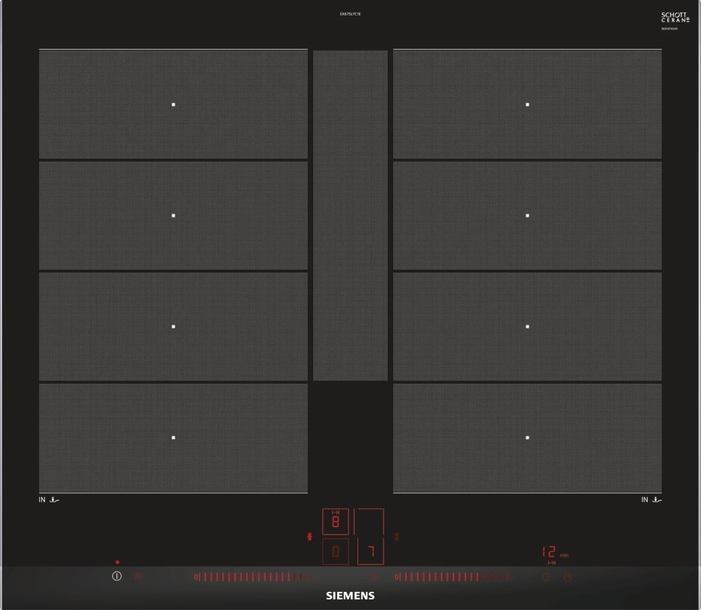- Placas flexInducción - IQ700 - SIEMENS, EX675LYC1E, Encimera, Inducción, Encastrable, 60 cm., 2 zonas, Color negro / topClass, lightSlider, flexInducción Plus, fryingSensor en todas las zonas Top