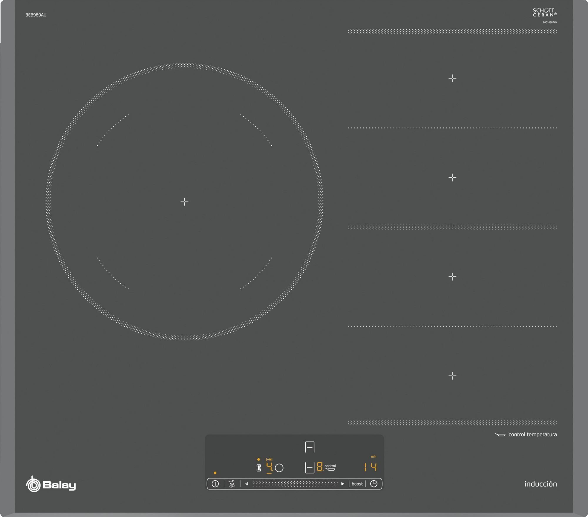 BALAY, 3EB969AU, Encimera, Induccion, Encastrable, 60 cm, 2, Antracita/Biselada, Control Deslizante, Flex Induccion, zona de 28 cm, control de t? en zona flex