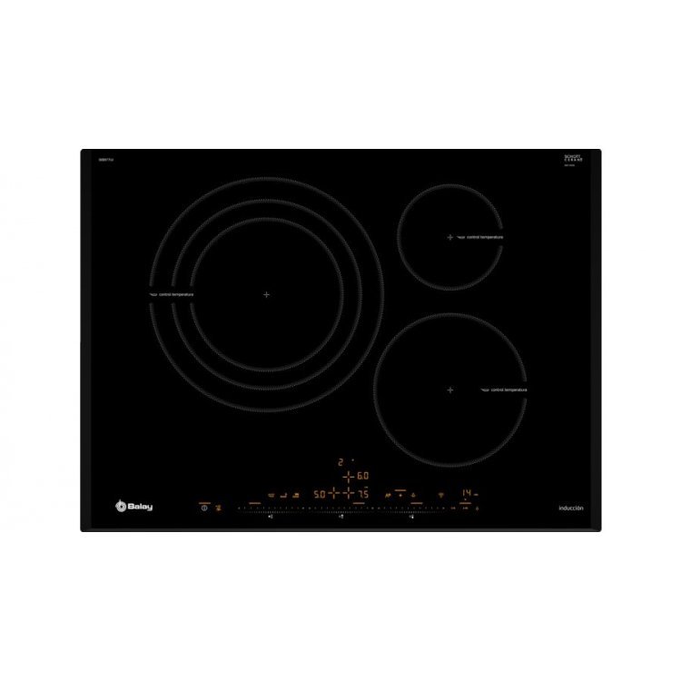 BALAY, 3EB977LV, Encimera, Induccion, Encastrable, 70 cm, 3, Negra/Biselada, Control Balay Premium, control placa - campana, zona de 32 cm, control de t? en todas las zonas