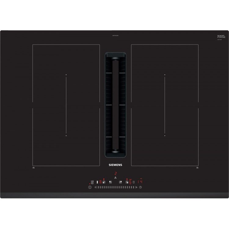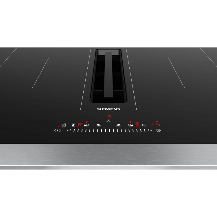 Las nuevas placas con extractor integrado Siemens eliminan totalmente los humos y olores mientras cocinas. La colocación del extractor impide que estos se dispersen, mientras que el sensor de control de ambiente disponible en la placa flexInducción con extractor integrado realiza mediciones permanentes para que la función auto funcione en cada momento con la intensidad correcta.