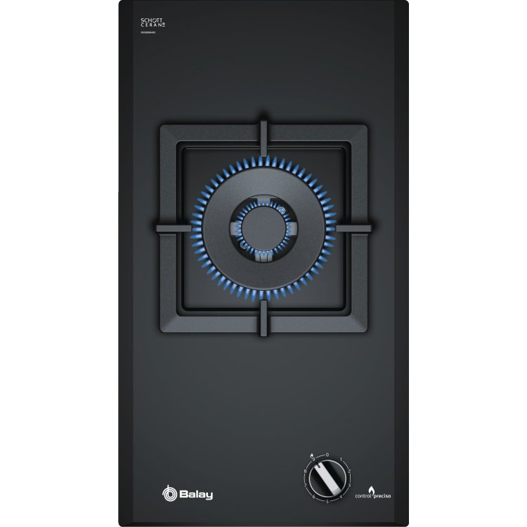 Placa Modular Touch Control / Línea Profesional BALAY, 3ETG631HB, Encimera, Dominó, Encastrable, 30 cm.., 1, Negra/Biselada, Wok de gas 4 kW, Línea Profesional, Control preciso de la llama con 9 niveles de potencia, Gas Stop, autoencendido