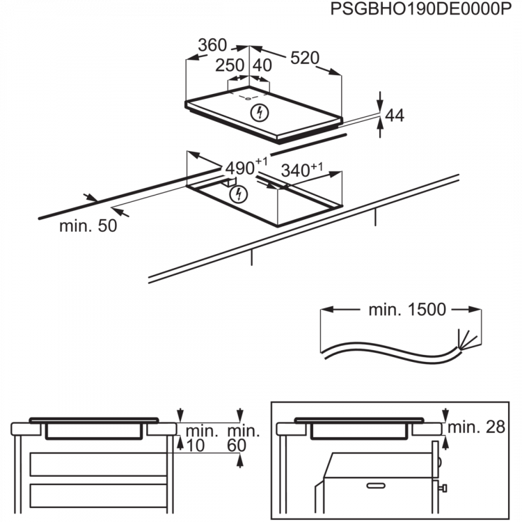 Placas Modulares Inducción 36 cm, 2 zonas com Puente, Inducción, Controles slider (0-9 con Power) individuales con temporizador Eco individual, Detección de recipiente, Bloqueo de seguridad, Sin Marco