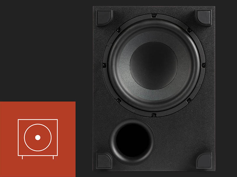 Un recinto reforzado equipado con un puerto orientado hacia abajo minimiza las resonancias y las interferencias acústicas, proporcionando unos graves definidos que llenan la habitación.