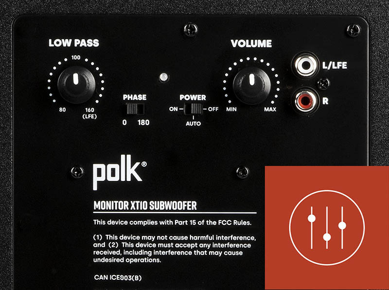 Un filtro divisor de frecuencias ajustable, un filtro de paso bajo, un selector de polaridad y un control de volumen del subwoofer te permiten ajustar con precisión la respuesta de graves, tanto si lo que buscas es una mejora sutil como si quieres que tiemblen las paredes.