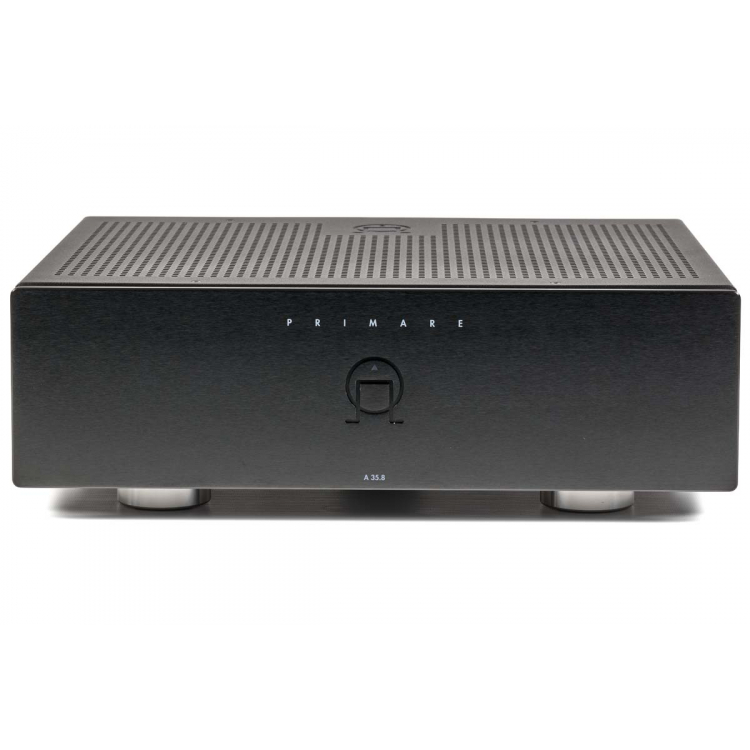 Primare A35.8.  A35.8 – amplificador de ocho canales, totalmente puenteable, con entrada balanceada.  El A35.8 es el amplificador multicanal más potente y flexible de Primare, diseñado para satisfacer las necesidades de prácticamente cualquier sistema multicanal de alto rendimiento gracias a su capacidad para puentear cada par de canales a mono para un nivel increíble de entrega de potencia y opciones de construcción de sistemas, incluyendo 1500 vatios de salida total en una configuración estéreo biamplificada totalmente puenteada.