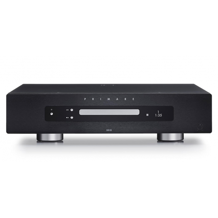 Primare DD35. Transporte de CD dedicado de alto rendimiento, diseñado para extraer la señal digital más pura posible de un disco compacto y enviarla a un DAC (conversor digital-analógico) externo o a un amplificador con entrada digital. DD35 es un transporte de CD dedicado de tamaño completo que utiliza una unidad de CD dedicada de baja resonancia de última generación y una salida digital de ruido ultrabajo.