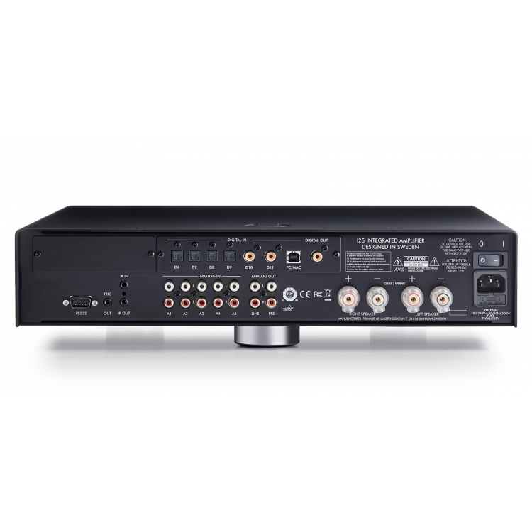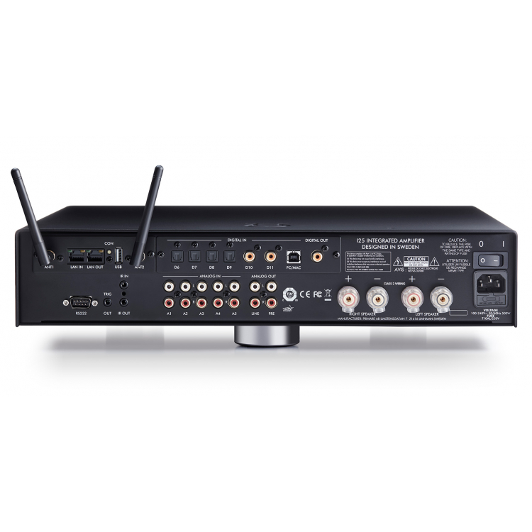 Además de cinco entradas analógicas, el I25 DAC DM36 incluye una etapa de conversión digital a analógica DM36 con todas las funciones, que permite la conversión de hasta PCM 384 kHz/32 bits y DSD 256.