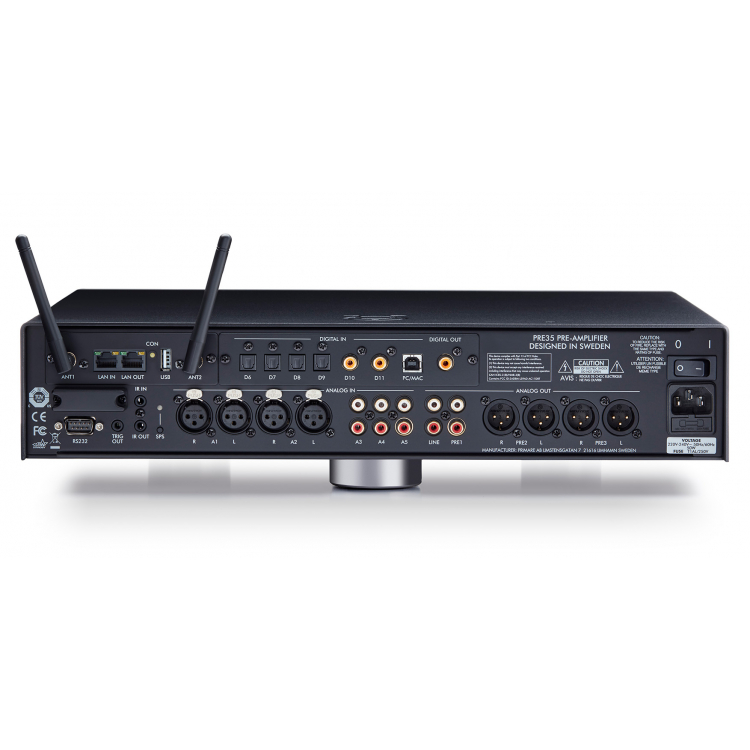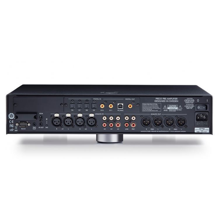 Además de opciones de entrada y salida completas, con conexiones XLR y RCA, el DAC PRE35 incluye la etapa DAC DM36 con todas las funciones que permite la conversión de hasta PCM 384kHz/32bit y DSD 256, y debido a su diseño modular también permite agregar el módulo reproductor de red Prisma, SM35 , al amplificador en cualquier momento para una personalización del sistema sin precedentes.