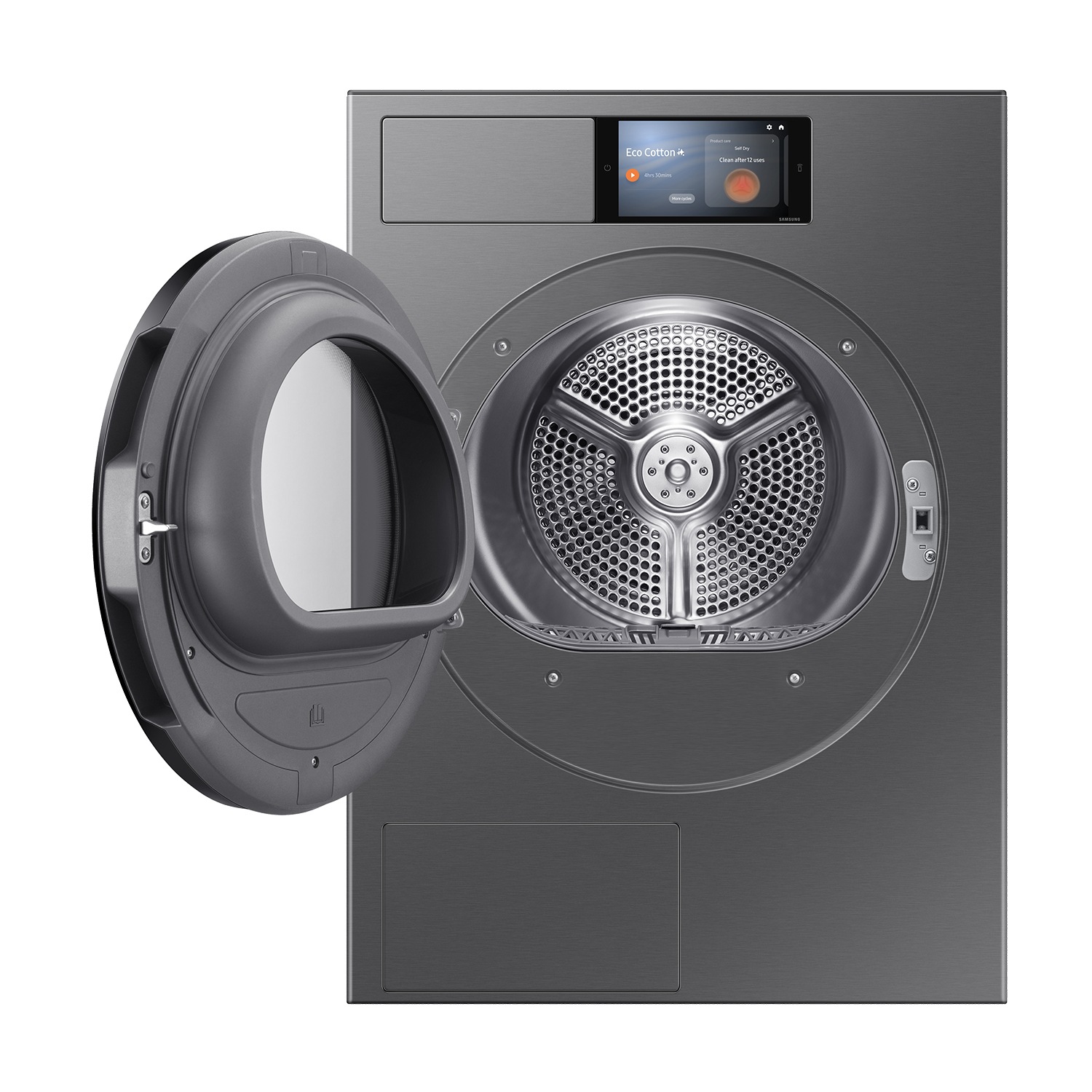 SECADORAS, BOMBA DE CALOR ´´BOMBA DE CALOR, Serie 9, AI Dry, Quickdrive, Drum light, Air Wash, Air Refresh, Aire templado yWifi con smartThings e inteligencia artificial. Puerta vidrio templado y Display 7´´´´ Touch LCD. Puerta reversible 62 dB 850x600x600,Clase Energética A Dark Silver Steel´´