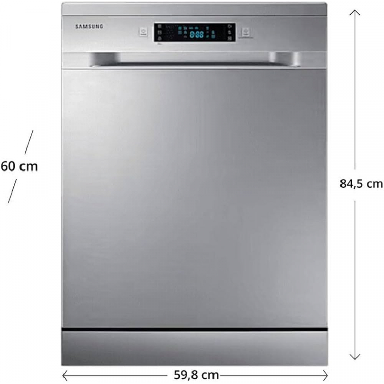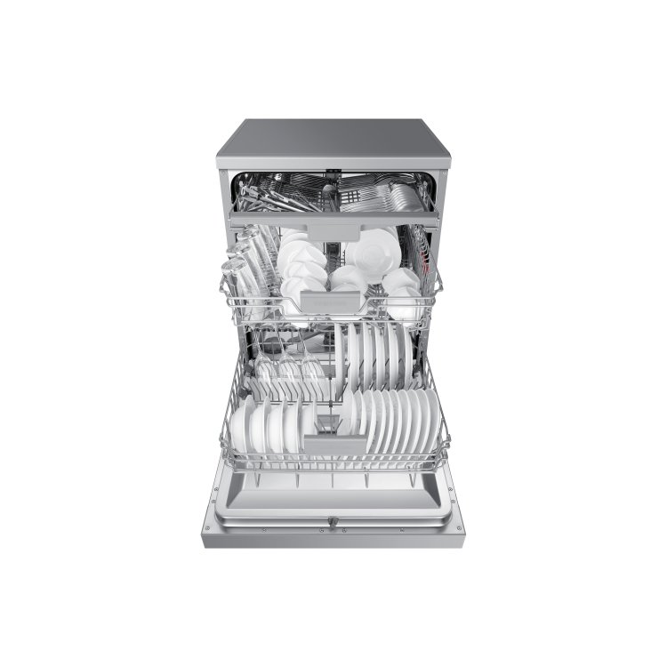 Lavavajillas 60cm SAMSUNG DW60CG550FSRET Clase D 14 cubiertos 7 programas Inox. Lavavajillas Free Style 60Cm Nueva gama, 3ª bandeja Flex, media carga seleccionable, 7 programas, programas rápido 60? y 30?, apertura automatica de puertas Clasificación energética: D Capacidad: 14 Cub. Wifi: NO Decibelios: 44 Consumo Kwh/año:85 Acabado: Inox Asia