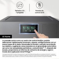 - AI Home / Pantalla Táctil de 7" : La pantalla LCD táctil a color de 7 pulgadas actúa como un centro de control intuitivo. Facilita la selección de funciones y ajustes con un simple toque, y personaliza la experiencia recordando los hábitos de lavado del usuario y sugiriendo los ciclos más adecuados mediante aprendizaje automático.