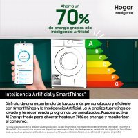 - AI Energy Mode : A través de la aplicación SmartThings, los usuarios pueden monitorizar y reducir el consumo eléctrico de la lavadora, optimizando aún más el uso de energía.