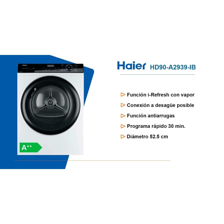 Secadora Bomba de Calor HAIER HD90-A2939-IB Clase A 9Kg Blanco
