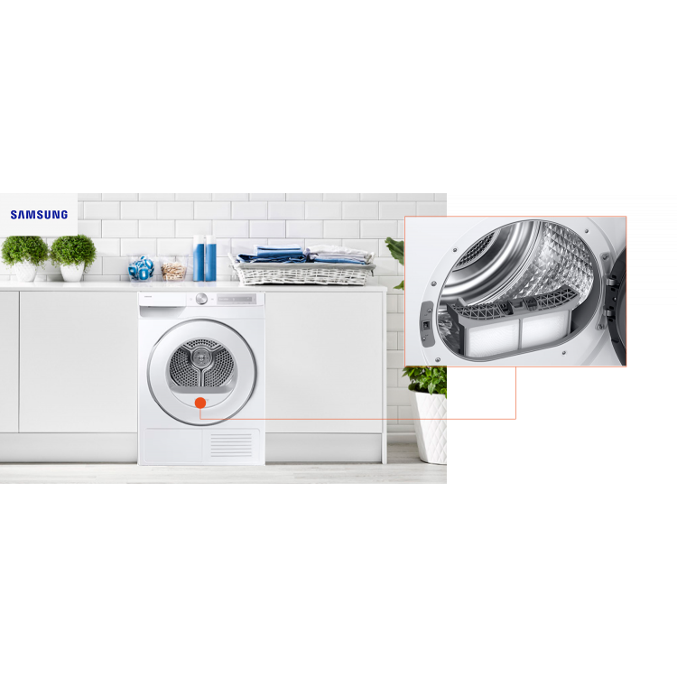 SECADORAS, BOMBA DE CALOR BOMBA DE CALOR, Serie 6, AI Dry, Quickdrive, Secado rápido en 35 minutos, Air Wash, Air Refresh, Aire templado y Wifi con smartThings e inteligencia artificial. Puerta blanca y Display AI Control. Puerta reversible 65 dB 850x600x600,Clase Energética A Blanco
