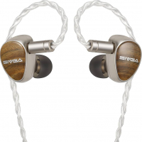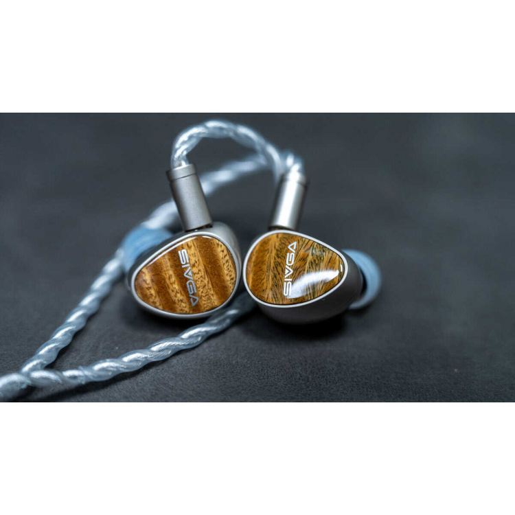 Sivga Que UTG auricular intrauditivo (IEM) que destaca por su innovador diafragma de vidrio plano y un diseño que combina aleación de zinc y sándalo verde. Ofrecen un sonido detallado, natural y bien balanceado, ideal para audiófilos y uso en estudio.ie insignia EX de la marca.