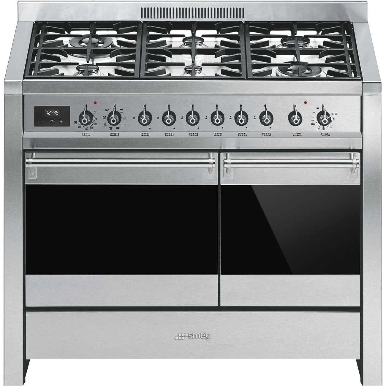 Cocina todo horno SMEG A2-81 6 fuegos Gas Natural 100cm Inox. Selección - Cocinas > 90Cm Cocina 100x60 cm, Opera, Acero Inoxidable, Tipo de horno principal: Termoventilado, Sistema de limpieza: Catalitico, Nº de funciones de cocción: 8, Tipo encimera: Gas, Número total de zonas de cocción: 6, Hierro fundido: Hierro fundido, Compartimento: Cajón, Categoría energética: A, Dimensiones (mm): 900x1000x600
