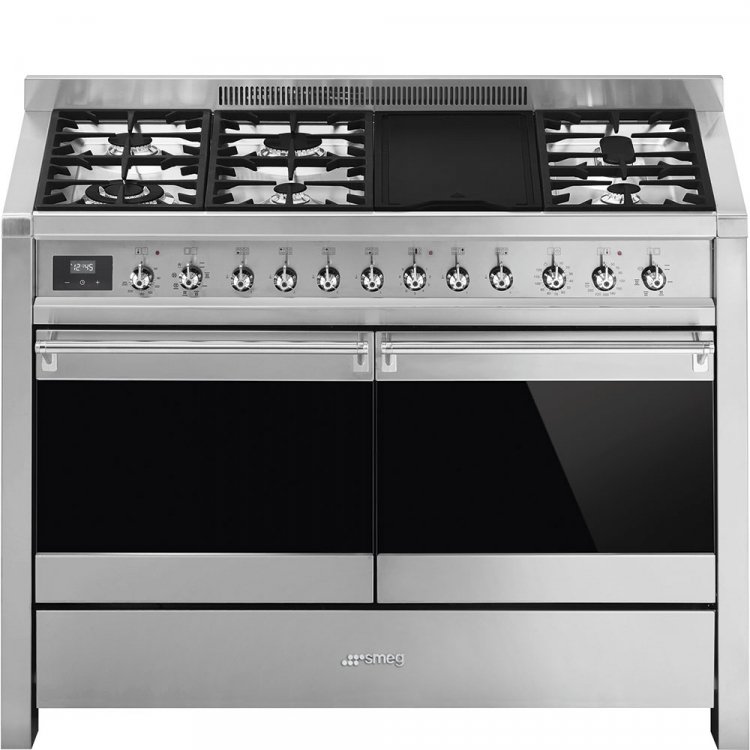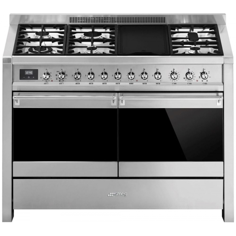 Cocina todo horno SMEG A4-81 6 fuegos Gas 120cm Inox. Selección - Cocinas > 90Cm Cocina 120x60 cm, Opera, Acero Inoxidable, Tipo de horno principal: Termoventilado, Sistema de limpieza: Catalitico, Nº de funciones de cocción: 8, Tipo encimera: Gas, Número total de zonas de cocción: 6, Hierro fundido: Hierro fundido, Compartimento: Cajón, Categoría energética: A, Dimensiones (mm): 900x1200x600