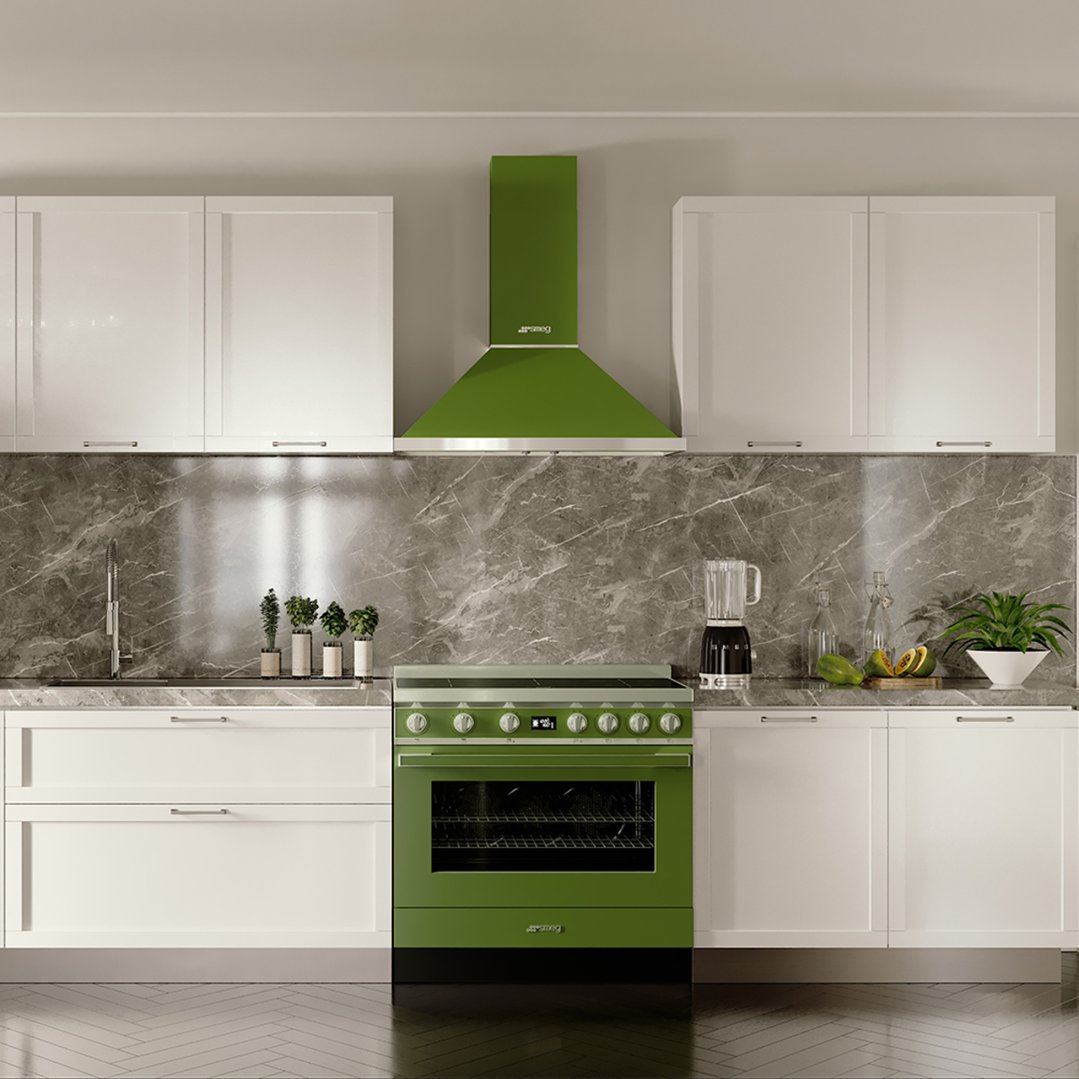 Cocina todo horno SMEG CPF9IPOG 5 fuegos Inducción No tiene 90cm Verde Oliva. Portofino - Cocinas Horno Pirolítico, Encimera Inducción Cocina Portofino 90 cm, color Verde oliva, encimera inducción 5 zonas cocción, horno multifunción, termoventilado, 10 funciones, Pirolítico, compartimento cajón solapa, Categoría energética: A+, Dimensiones (mm): 900x900x600