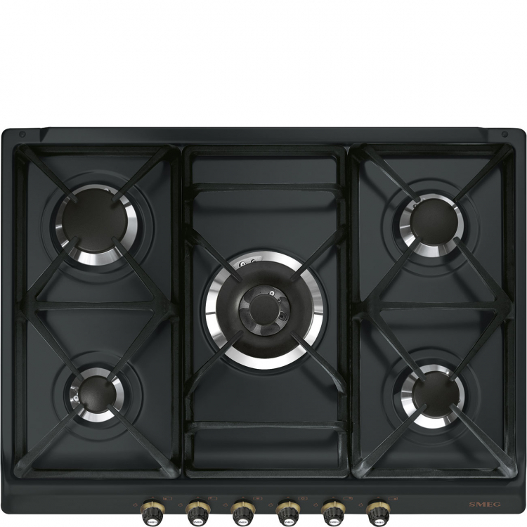 Placa Gas 68,5cm SMEG SR775AO con 5 quemadores. Cortina - Encimera Gas Encimera de Gas Cortina, color Antracita, 70 cm, 5 zonas de cocción, parrillas hierro colado, Quemador Ultrarrápido doble mando 5000 W , Dimensiones mm (AnxFnxAl): 74x688x504