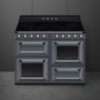 Cocina sin portabombona SMEG TR4110IGR2 5 fuegos 110cm Gris. Victoria - Cocinas 110 Cm Cocina Victoria, color gris 110 cm, encimera de inducción con 5 zonas de cocción, 3 hornos, Vapor Clean, clase energética A, 7 funciones horno principal, 4 funciones horno secundario, Clasificación energética: A, Dimensiones mm (AnxFnxAl): 900x1100x602