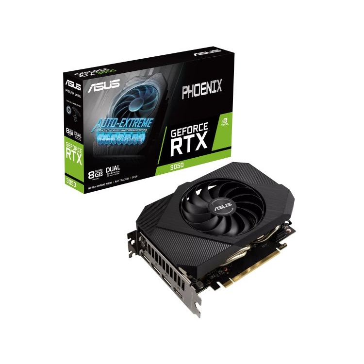 Características:. . Multiprocesadores NVIDIA Ampere Streaming: el nuevo Ampere SM brinda el doble de rendimiento que el FP32 y mejora la eficiencia energética.. Núcleos RT de segunda generación: experimente el doble de rendimiento que los núcleos RT de primera generación, además de RT y sombreado simultáneos para un nivel completamente nuevo de rendimiento de trazado de rayos.. Núcleos tensoriales de tercera generación: obtenga hasta el doble de rendimiento con escasez estructural y algoritmos de IA avanzados como DLSS. Estos núcleos brindan un impulso masivo en el rendimiento del juego y capacidades de IA completamente nuevas.. El diseño del ventilador Axial-tech presenta un centro de ventilador más pequeño que facilita aspas más largas y un anillo de barrera que aumenta la presión del aire hacia abajo.. Los rodamientos de doble bola en ventilador pueden durar hasta el doble que los diseños de rodamientos de manguito.. La tecnología Auto-Extreme utiliza la automatización para mejorar la confiabilidad.. Una placa posterior protectora evita que la PCB se flexione y se dañen las trazas.. Un recubrimiento protector de PCB protege contra la humedad, el polvo y las temperaturas extremas.. . Especificaciones:. . Graphic Engine: NVIDIA® GeForce RTX 3050. Bus Standard: PCI Express 4.0. OpenGL: OpenGL®4.6. Video Memory: 8GB GDDR6. Engine Clock: OC mode : 1807 MHz (Boost Clock) / Gaming mode : 1777 MHz (Boost Clock). CUDA Core: 2560. Memory Speed: 14 Gbps. Memory Interface: 128-bit. Resolution: Digital Max Resolution 7680 x 4320. Interface: . Yes x 1 (Native HDMI 2.1). Yes x 3 (Native DisplayPort 1.4a). HDCP Support Yes (2.3). Maximum Display Support: 4. NVlink/ Crossfire Support: No. Dimensions: 177 x 128 x 51 mm. Recommended PSU: 550W. Power Connectors: 1 x 8-pin. Slot: 2.55 Slot